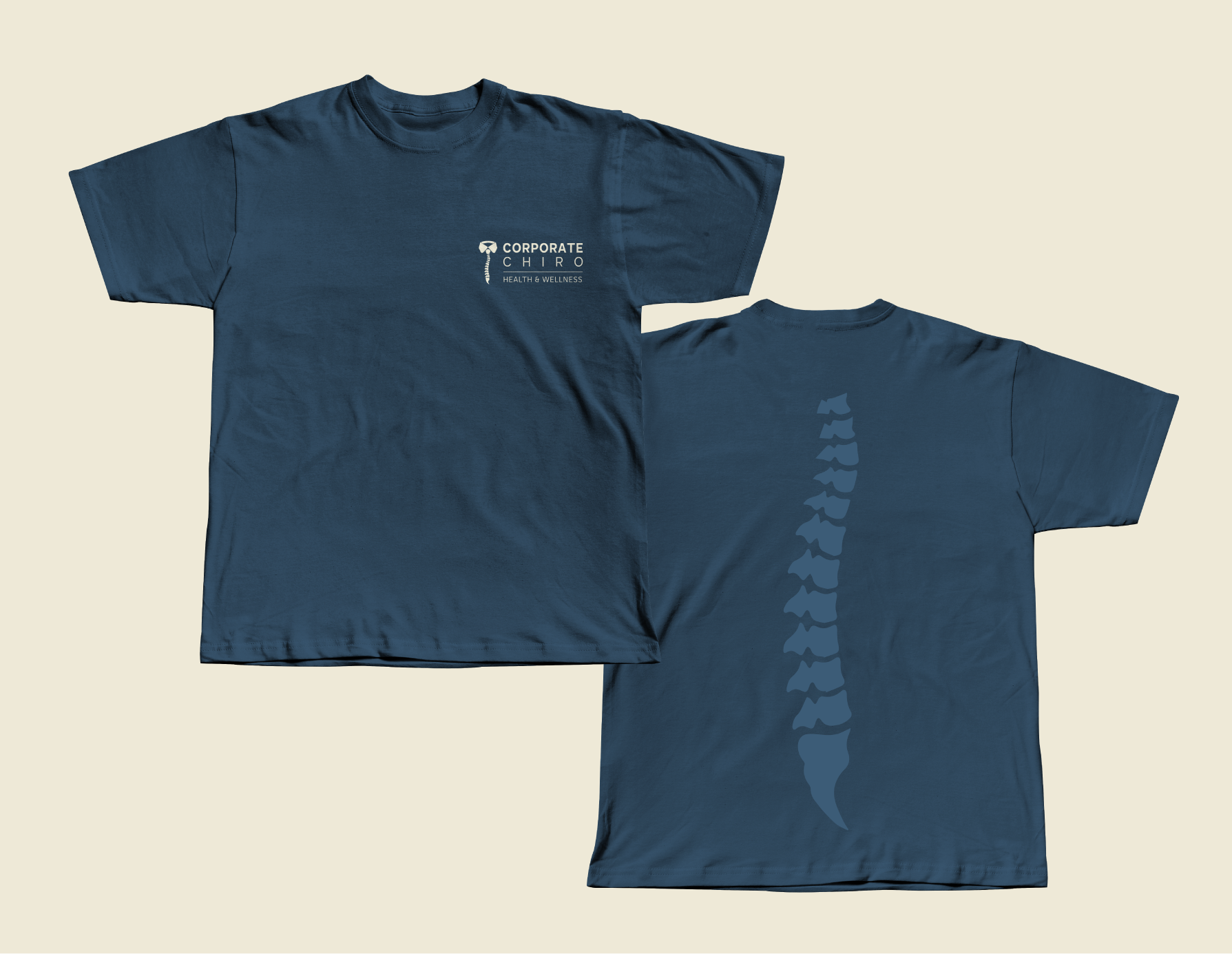 A modern and approachable brand identity for a chiropractic practice serving corporate professionals. The design emphasizes trust and wellness through a refined logo, a calming dark navy and light beige color palette, and cohesive brand assets. The visual system was crafted to feel professional yet welcoming, reflecting the practice’s focus on holistic care and corporate clientele.